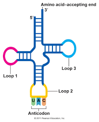 L'RNA di trasporto aiuta a tradurre il linguaggio acido nucleico in linguaggio proteico. La sua struttura a tre bracci presenta nel braccio inferiore tre nucleotidi che formano un anticodone. Sopra di esso è collocato un amminoacido.